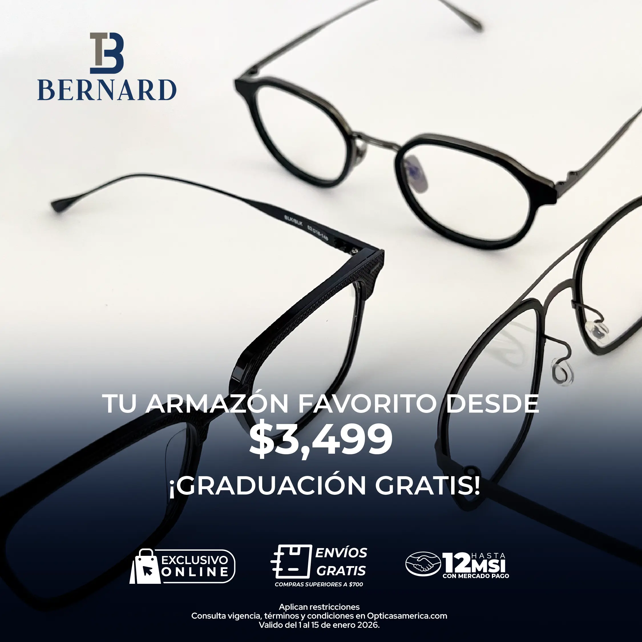 Lentes de la línea Tony Bernard de Titanio con graduación incluída desde $3,499.